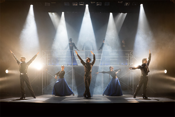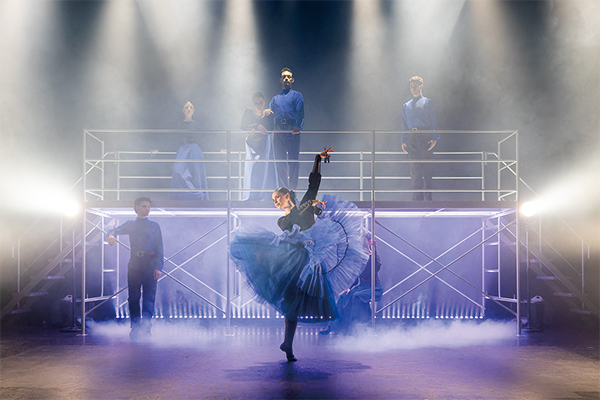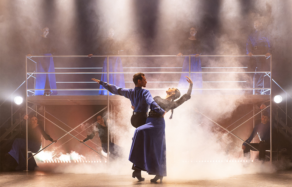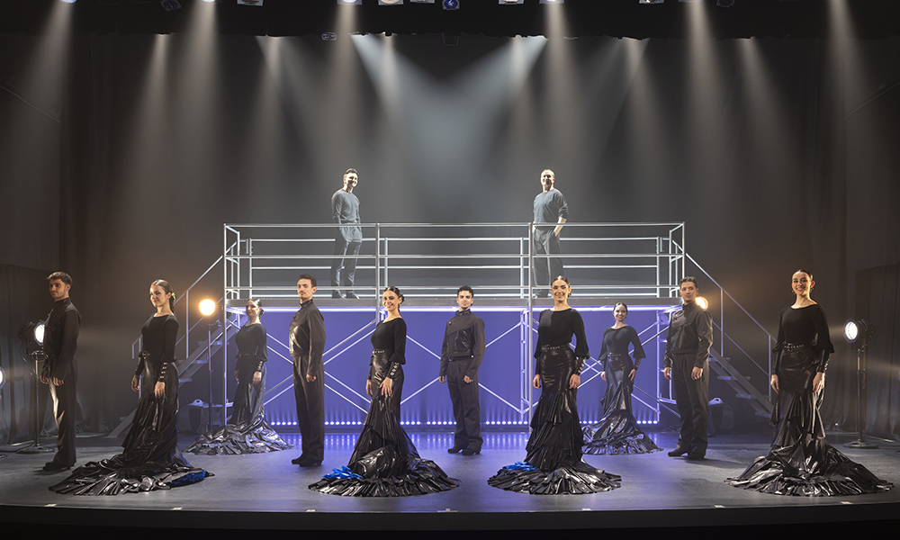鉄製の足場に作られた舞台上から見下ろすと、伝統的なフラメンコの踊りが繰り広げられています。鉄製の足場が象徴する現代とフラメンコ舞踊の伝統…。アンバランスな世界観が観る者を引き込んでいきます。