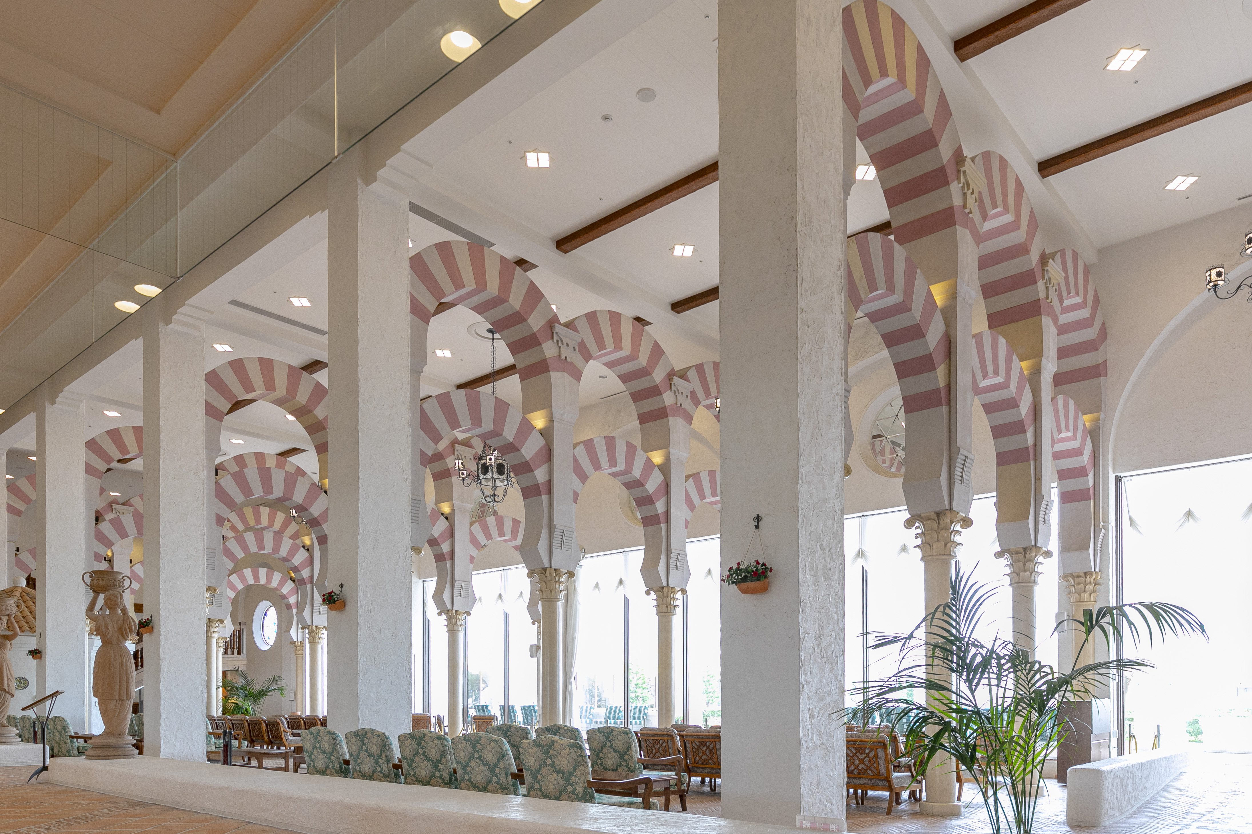 当館ロビーを象徴する印象的なアーチは、コルドバの世界遺産「メスキータ」をイメージしたデザインです。