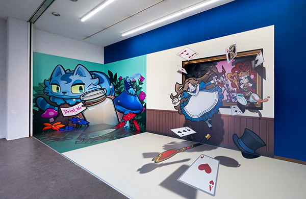 建物の外に3Dアートのフォトスポットがあるよ。アリスの世界観を楽しみながら、写真撮影しよう。