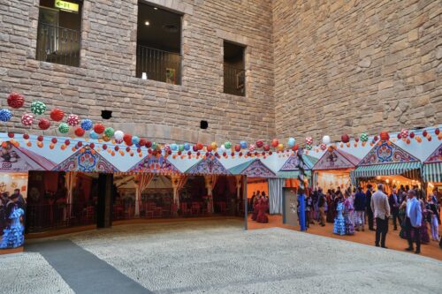 スペイン三大祭りのひとつで、毎年春に開催されている「セビーリャの春祭り」の雰囲気を感じられるスポットです。カラフルな提灯などが飾られていて、華やかです。