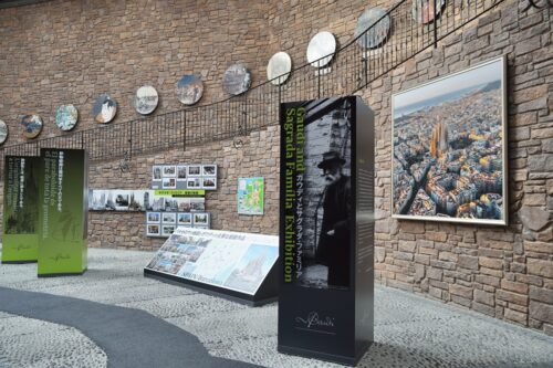 館内に入ってすぐのアトリウムでは、ガウディが残した言葉や、ガウディの年表、サグラダ・ファミリアの建築開始からの変遷などをパネルで紹介しています。