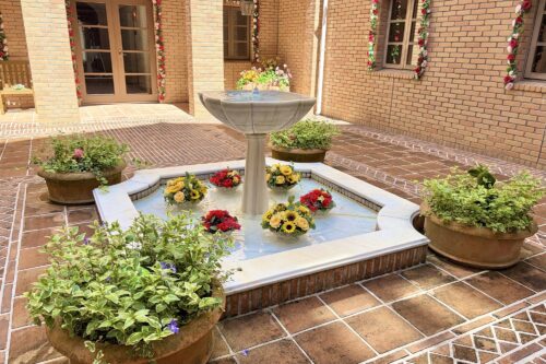 お花の鉢を噴水の中に設置してみました♪